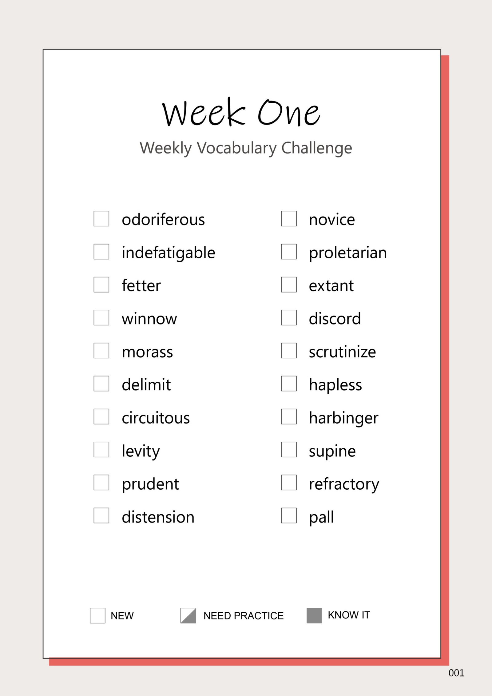 Learn new 240 SAT difficult vocabularies with simple weekly activities!